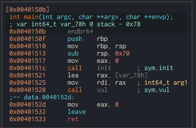 Using Cutter (reverse engineering tool), we can analyze the binary’s disassembly: