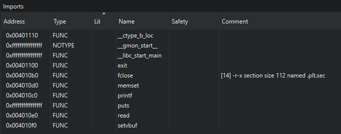 - PLT (Procedure Linkage Table): Contains stubs to call library functions