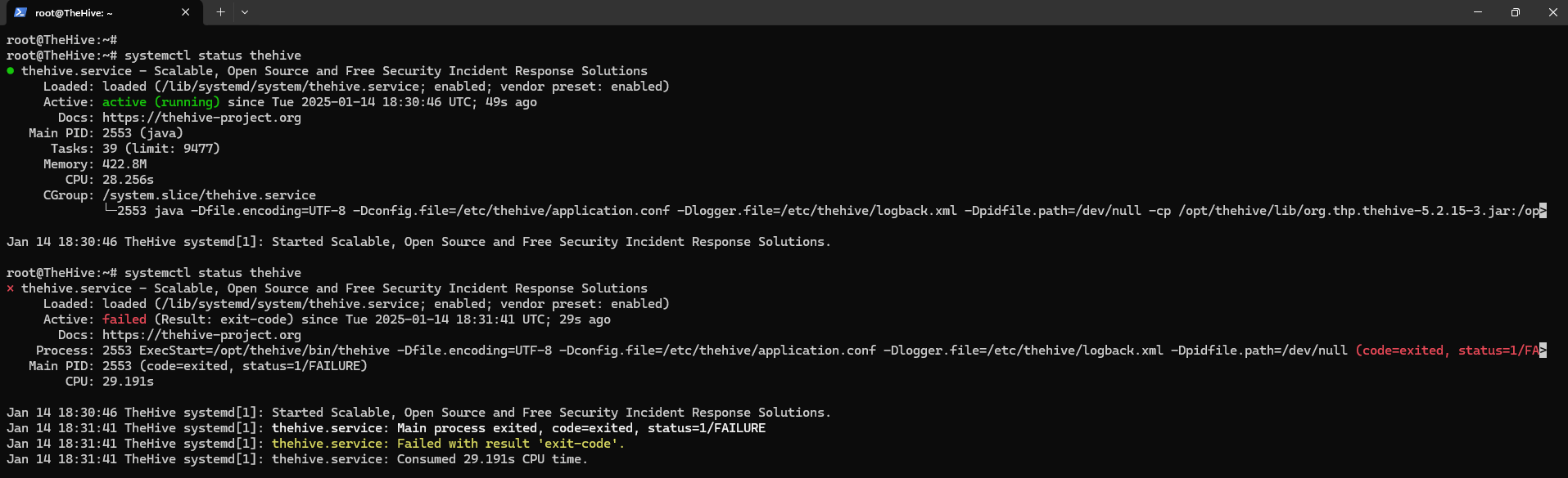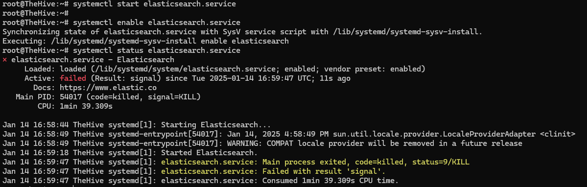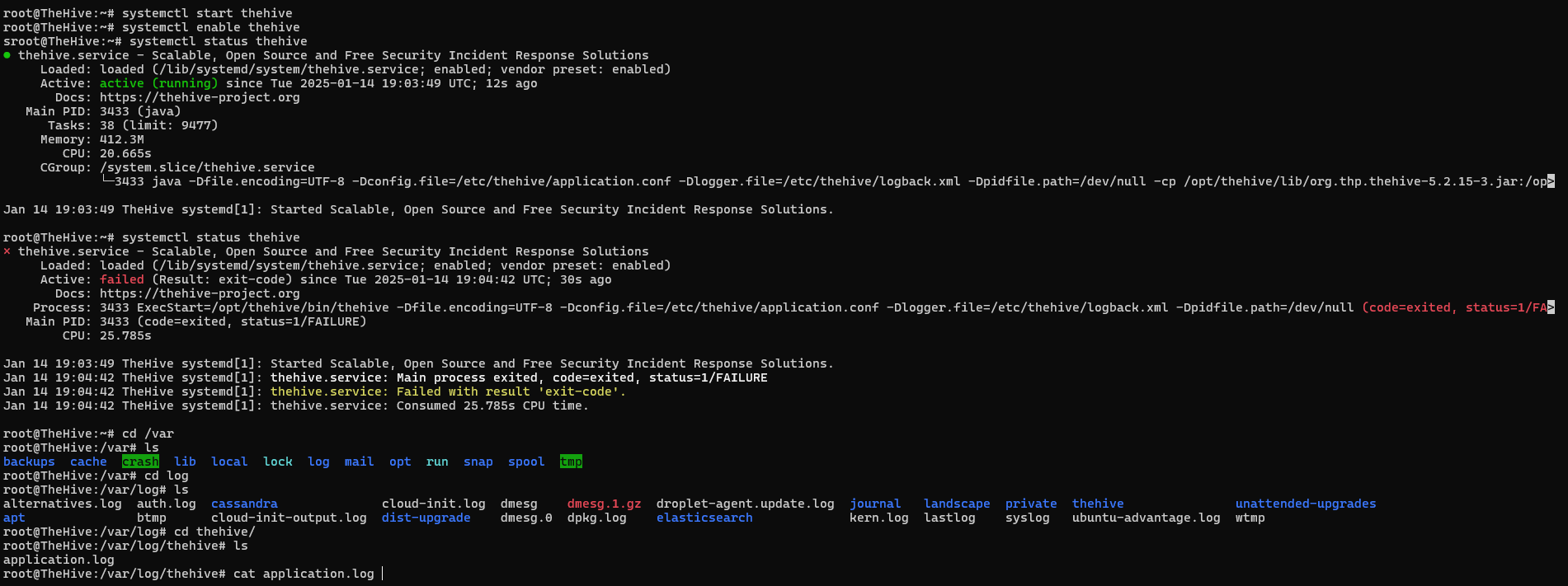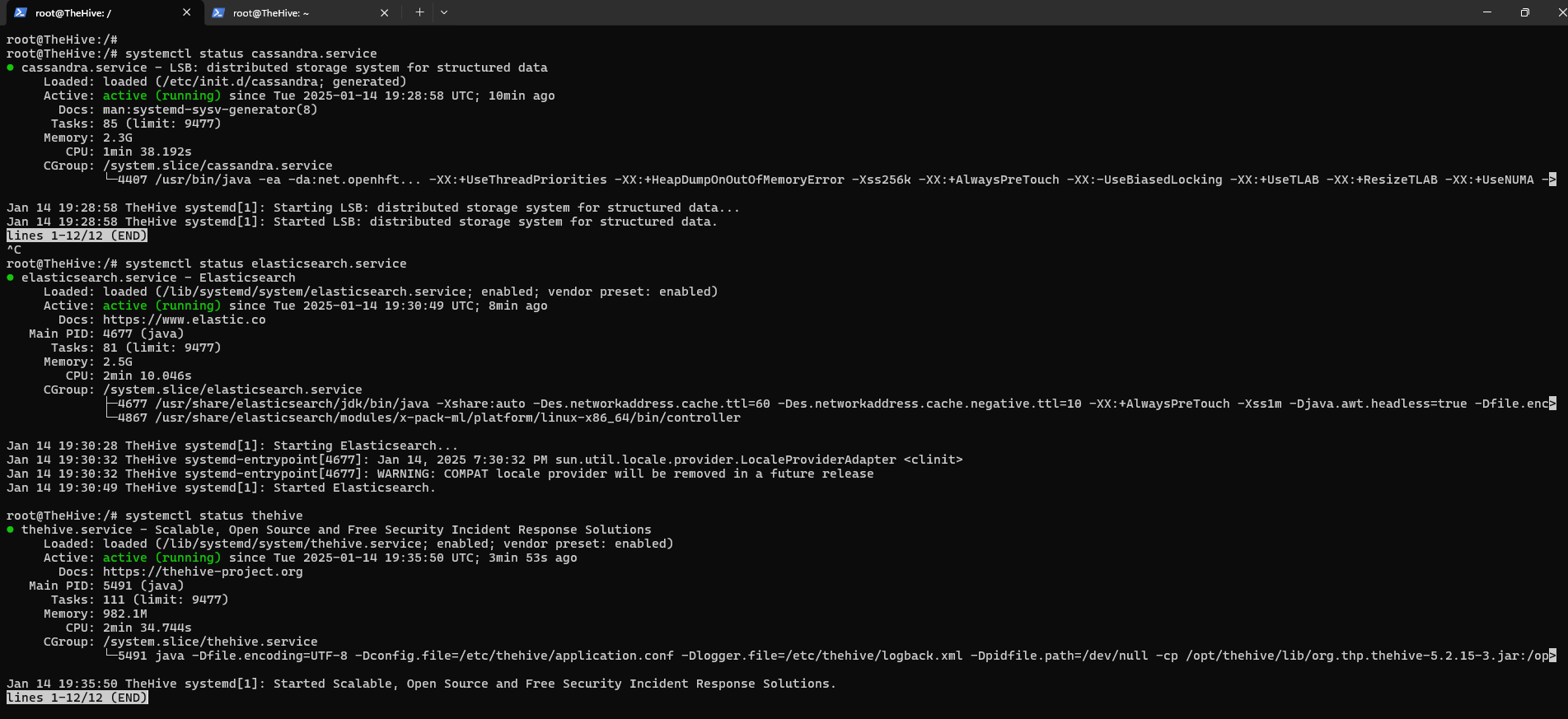 sudo systemctl status cassandra elasticsearch thehive