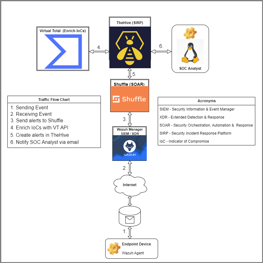 In this lab, we’ll build a complete SOC automation environment using: