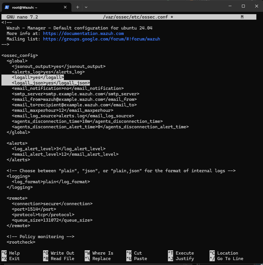 - Wazuh Manager/Server: Receives and processes data from agents