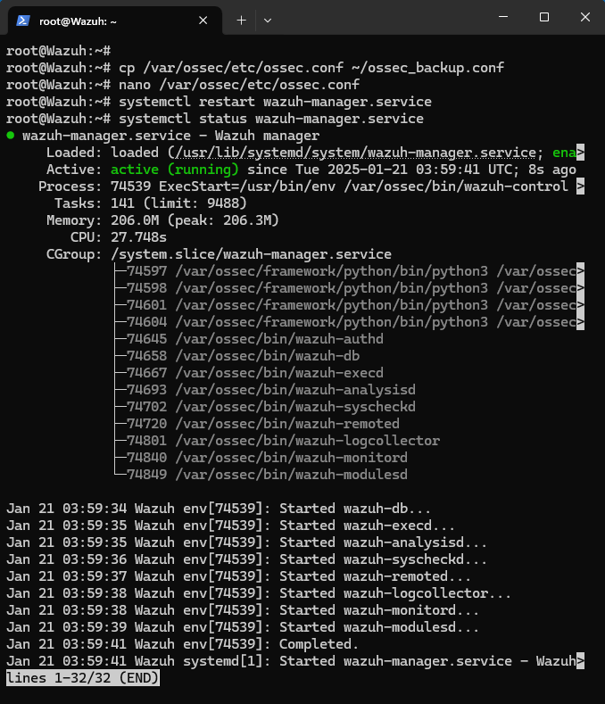 sudo systemctl status wazuh-manager