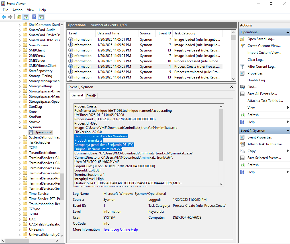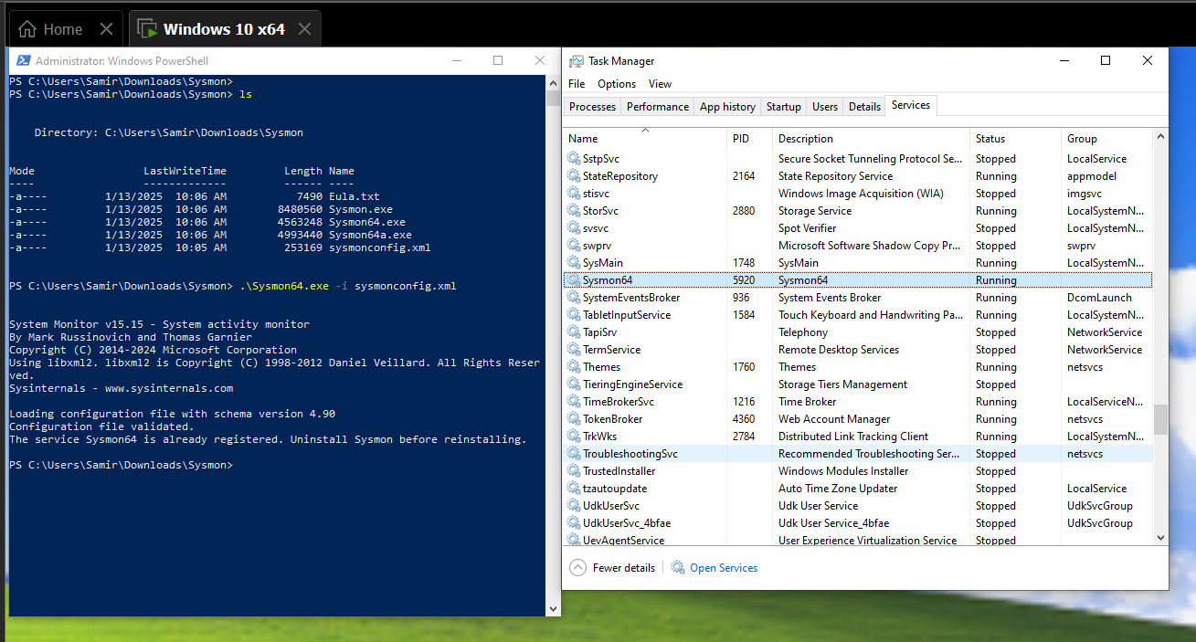 - Verify Sysmon is running: