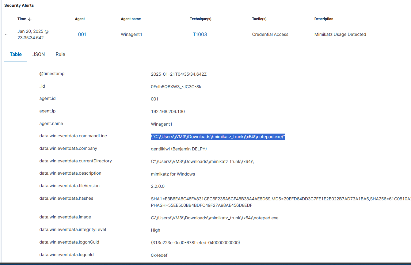 Rule: 100002 - Mimikatz detected