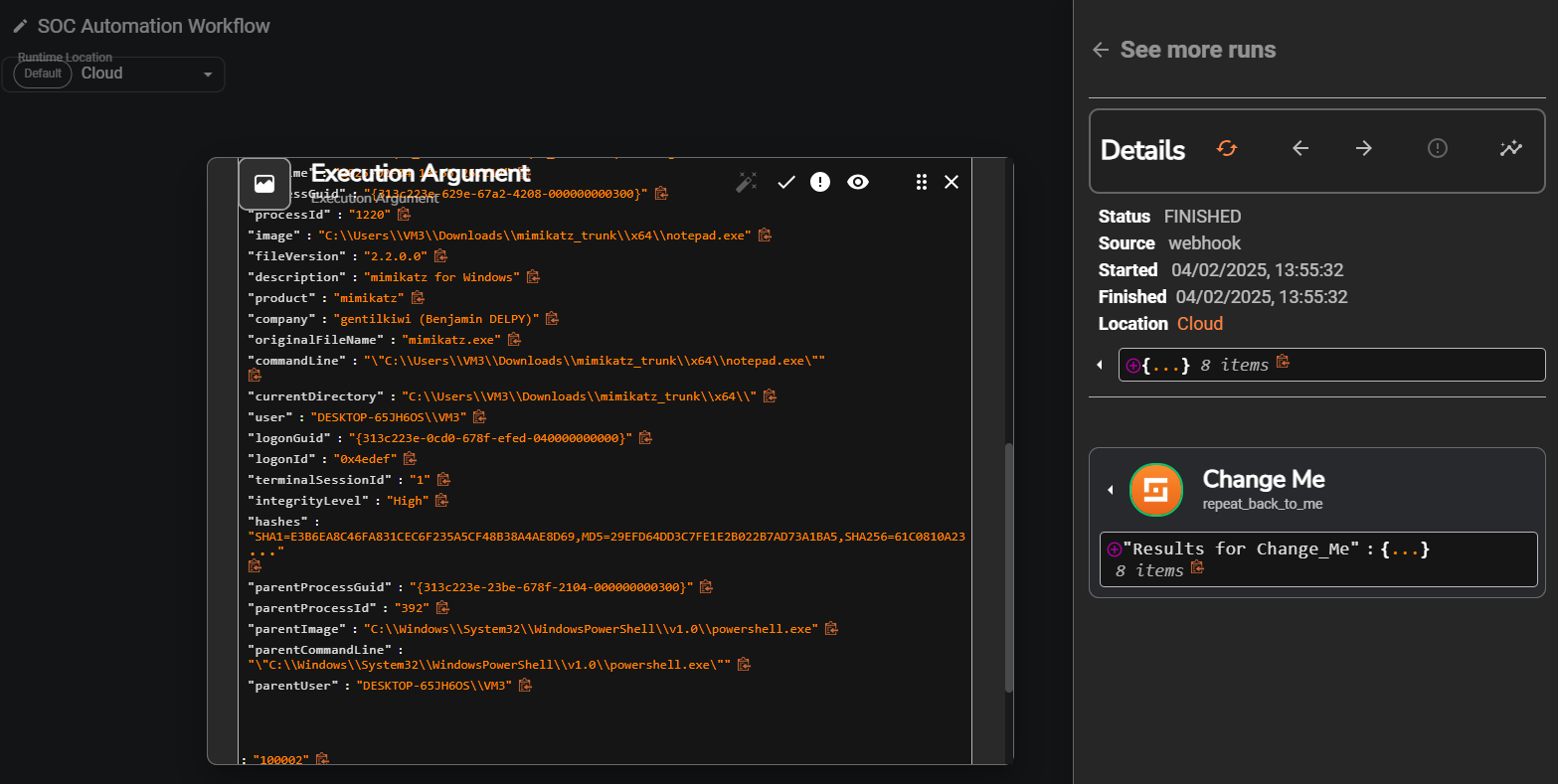 "workflow_name": "mimikatz_detection",